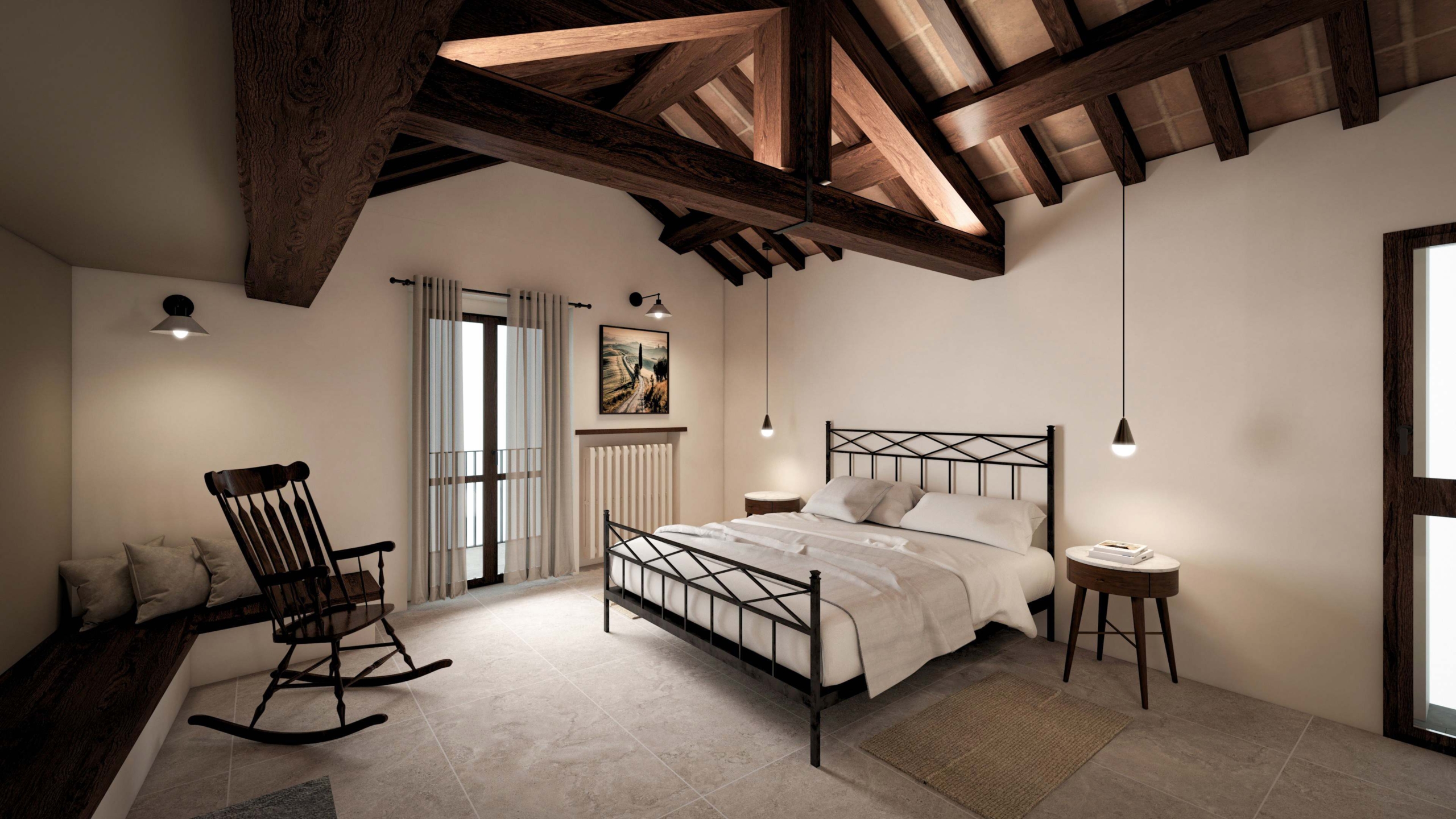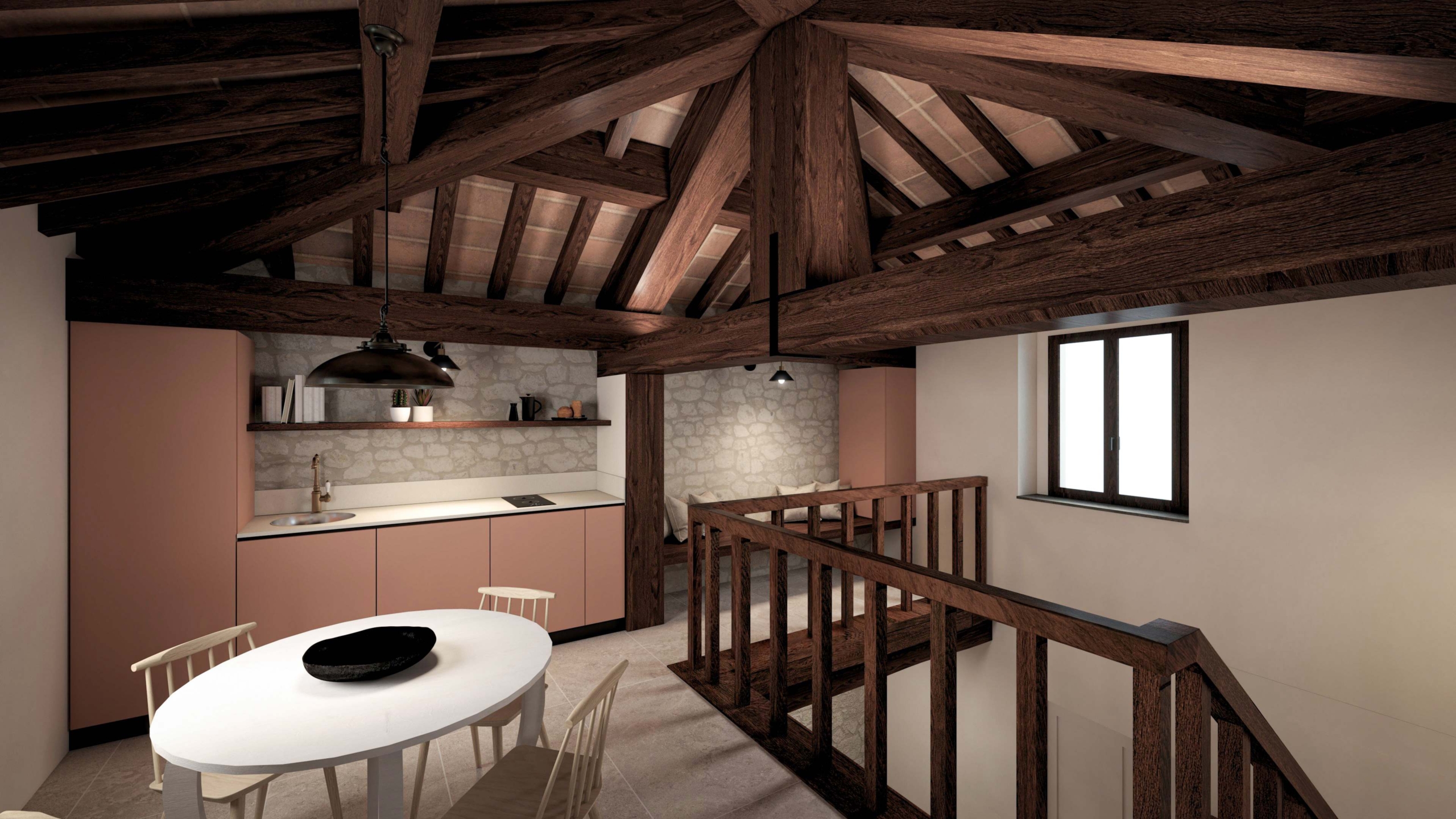 A two-storey villa with two double bedrooms, one shared bathroom and kitchenette. A single sofa bed is available in the entrance area.