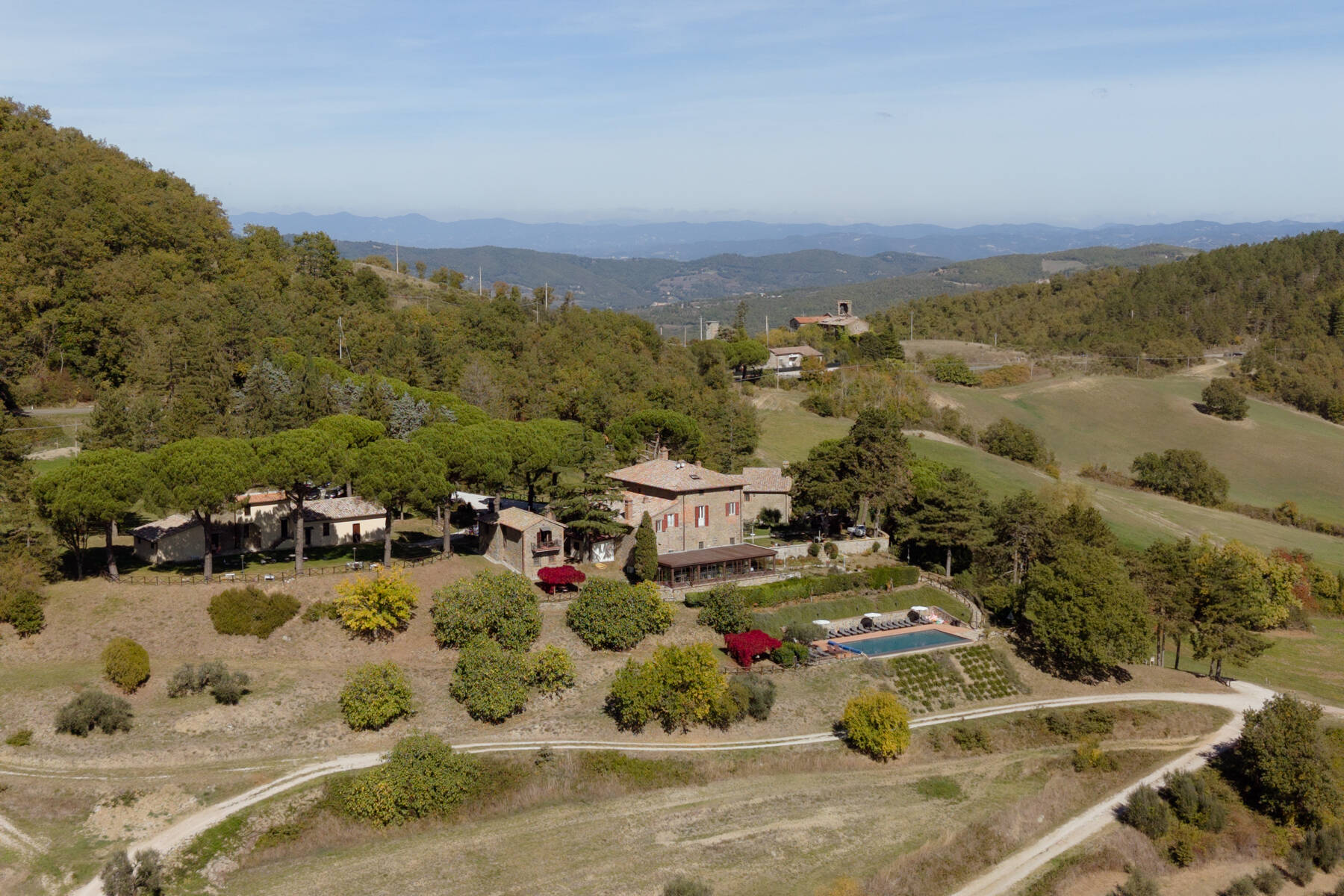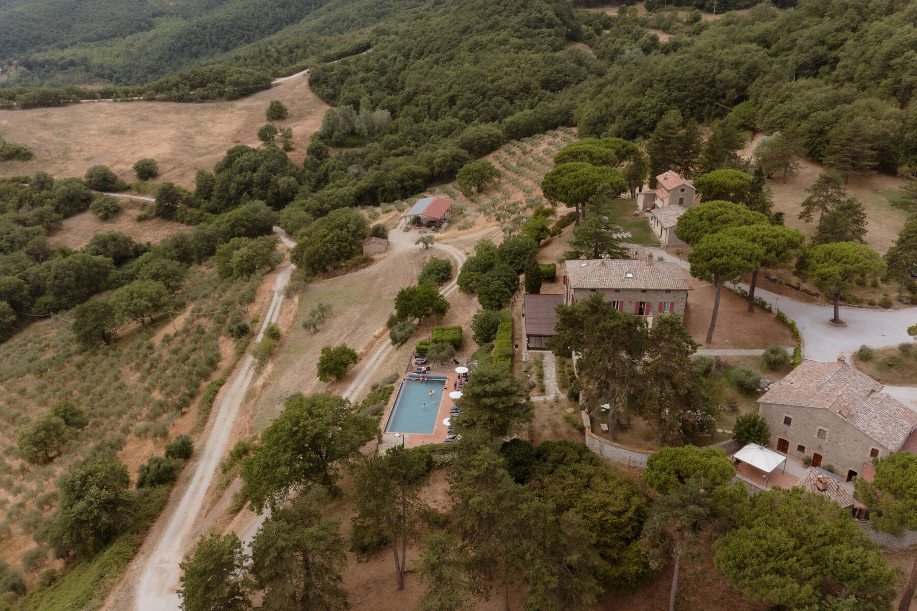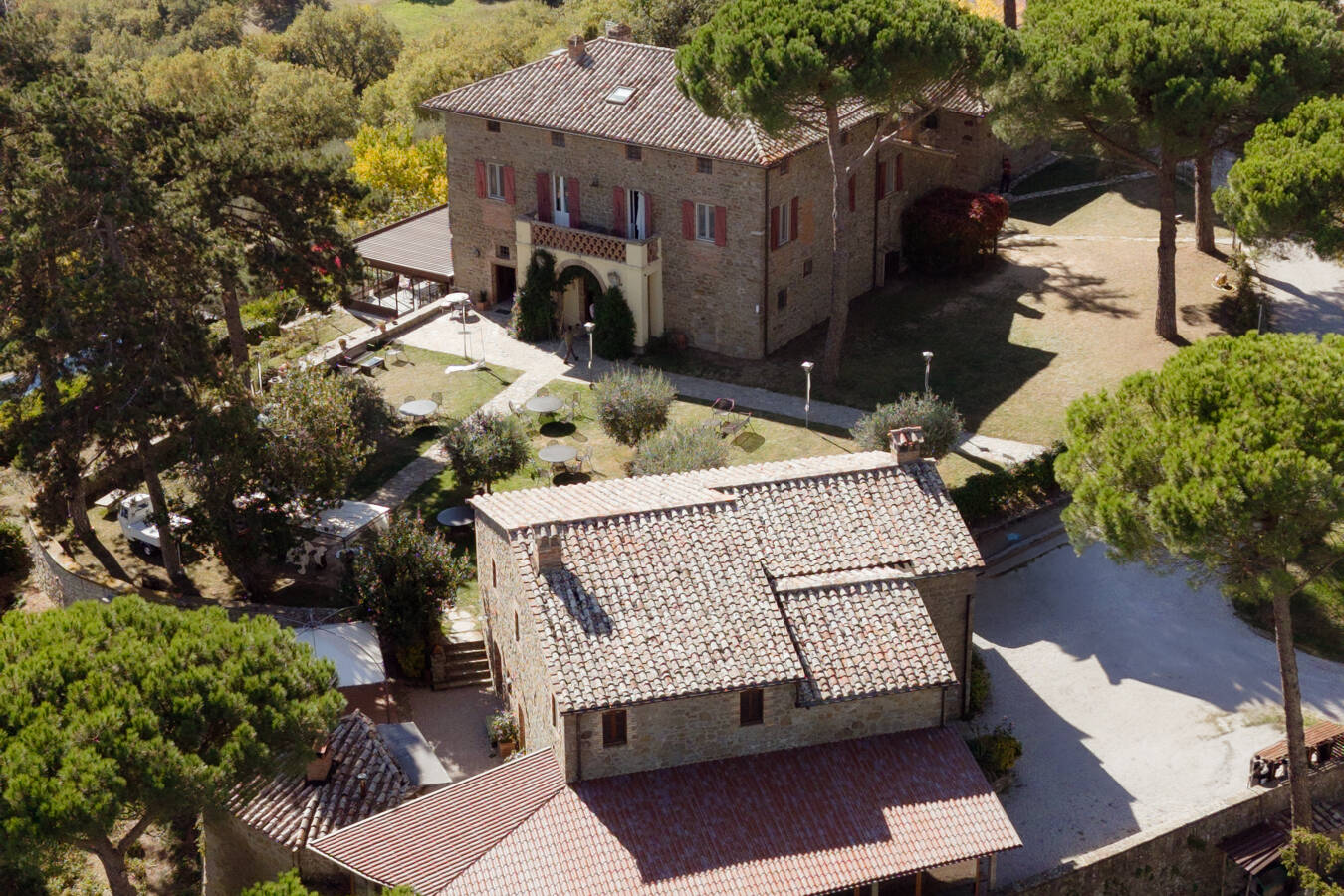 Throughout the estate, you’ll find chairs, tables, and barbecues available for your use — plus Wi-Fi in common areas to stay connected if needed. The organic farmhouse sits 700 metres above sea level, overlooking the picturesque Nese Valley. Across its 850 acres, the landscape is dotted with chestnut groves, ancient oak trees, olive orchards and peaceful ponds — nature at its most authentic.