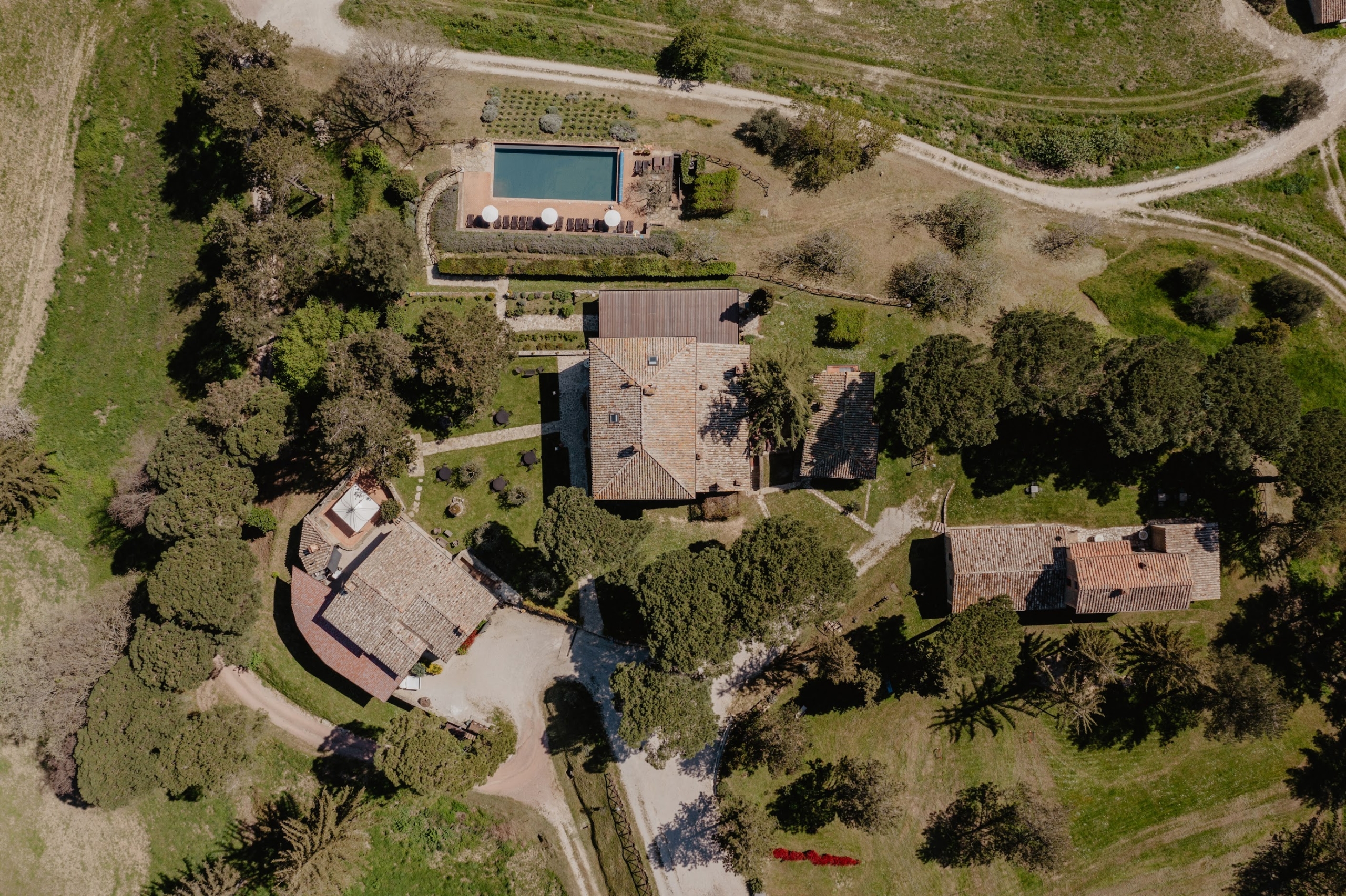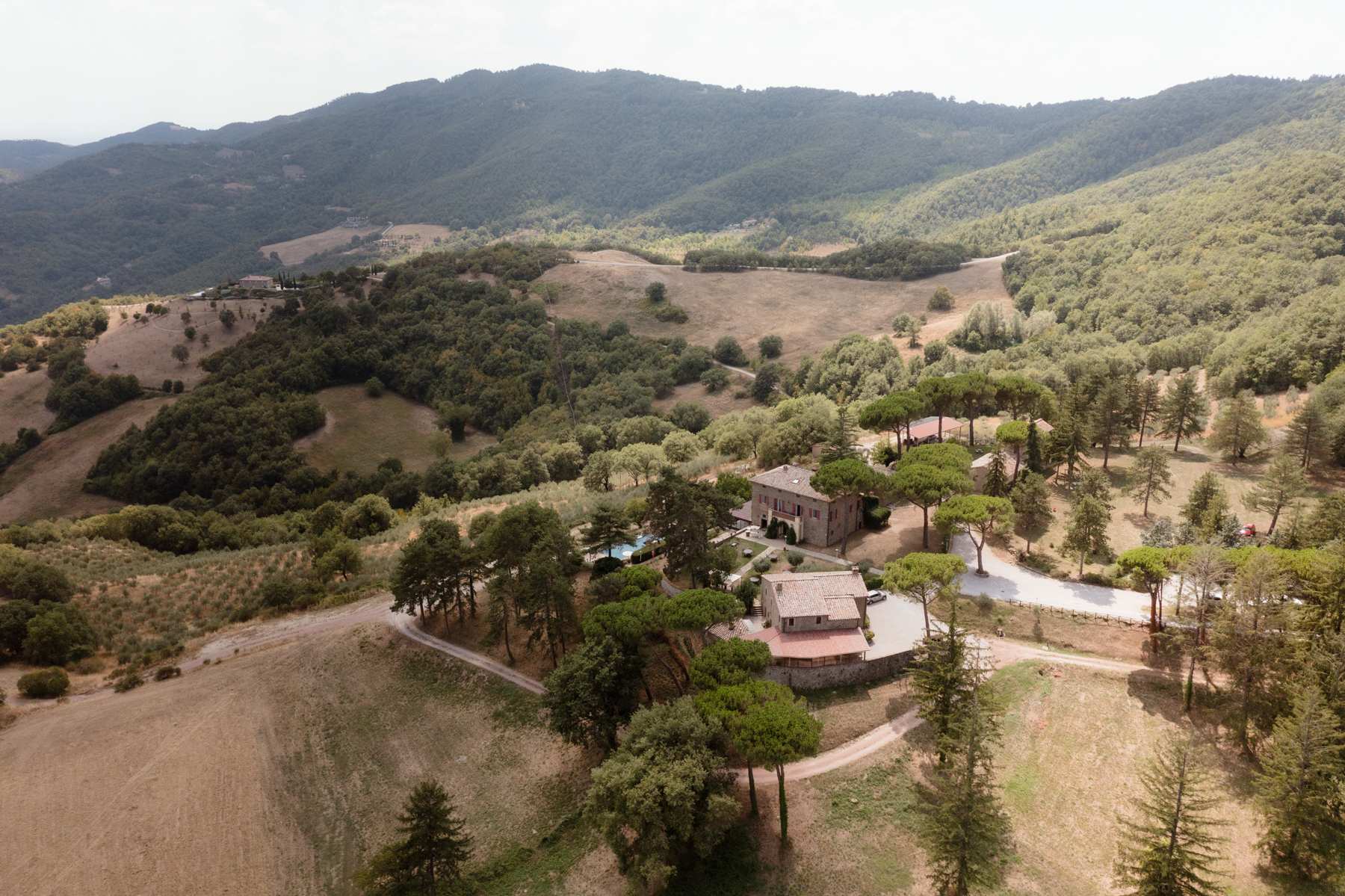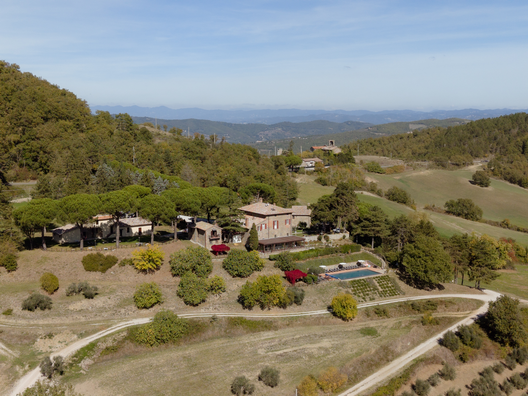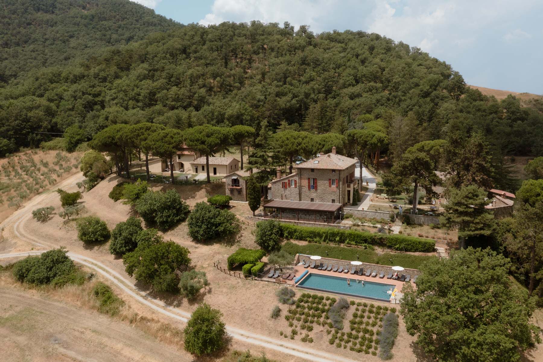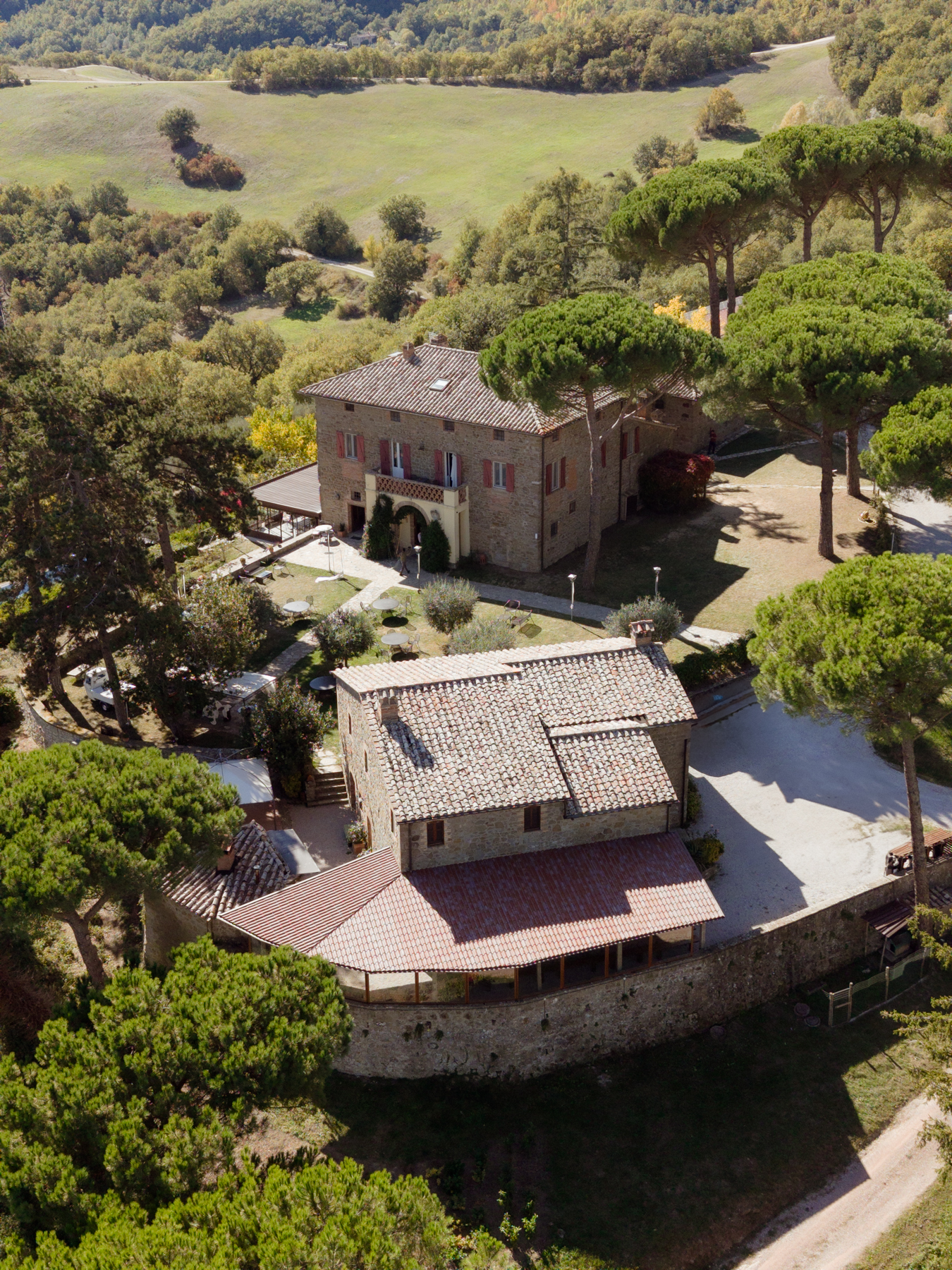Throughout the estate, you’ll find chairs, tables, and barbecues available for your use — plus Wi-Fi in common areas to stay connected if needed. The organic farmhouse sits 700 metres above sea level, overlooking the picturesque Nese Valley. Across its 850 acres, the landscape is dotted with chestnut groves, ancient oak trees, olive orchards and peaceful ponds — nature at its most authentic.